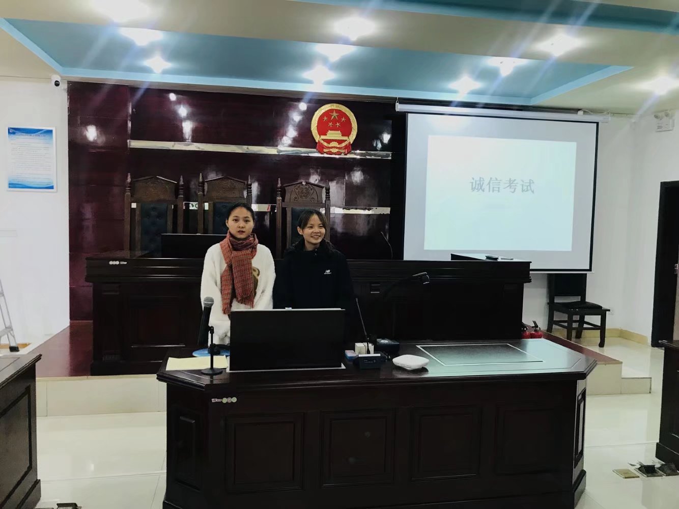四六级考试和期末考试临近,为严肃考试纪律,端正考试作风,12月1日上午,2019级法学本科班于模拟法庭开展“诚信考试”主题团日活动。本次活动由学习委员曾榆清和魏晓凤共同主持,2019级法学本科班全体同学参加。