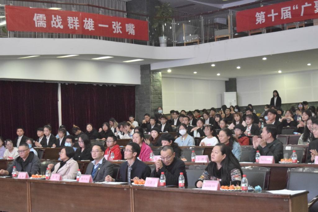 经邦济世现攀大底蕴,辩思古今述鸿鹄情怀。2021年12月12日晚,伟德国际bevictor1946于图书馆二楼学术报告厅举办第十届“广聚思辨杯”辩论赛决赛。法公司党总支副书记(主持工作)张琳、副经理(主持工作)杨开华、法学专业建设负责人蔡宏图,广聚律师事务所车龙、胡仕川、谷大平及学院部分教师莅临本次比赛。