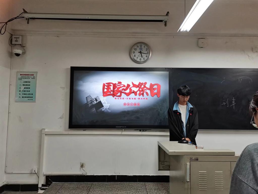 为悼念南京大屠杀中的遇难者,牢记侵略战争给中国人民造成的深重灾难,教育员工勿忘国耻,爱好和平,努力学习,12月13日下午,21级法学2班于二教304室开展以“勿忘国耻,珍爱和平”为主题的国家公祭日主题班会。此次班会由班长李崇玮主持,21级辅导员王霞、21级法学2班全体同学参加。