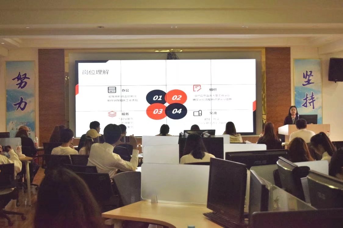 在主持人李小玲富有感染力的激情渲染下,本次竞选大会正式开始。各竞选人依次上台,以个人演讲方式进行自我风采展示,竞选者们参照PPT对自己进行简短的介绍与陈述。每一位参加竞选的同学,都充分的展现自己,表述了自己此次竞选的部门及自身的优势与竞争力,纷纷表示过去一学年在各自部门中学习到许多技能,获得了很多宝贵的经验,表示希望在未来能够尽自己的微薄之力,为热爱的团学组织作出一份贡献,将伟德国际bevictor1946团学组织建设得更好。现场气氛热烈,竞选者的演讲激动人心。竞选演讲结束后,吴军华对本次换届大会做出了总结。她对本次大会的圆满结束表示衷心祝贺,同时也对员工会的工作人员提出了新的要求,强调员工会成员要增强奉献精神和责任意识,将员工会打造成团结一心、和谐进步的学习型团队,至此,本次换届大会圆满结束。