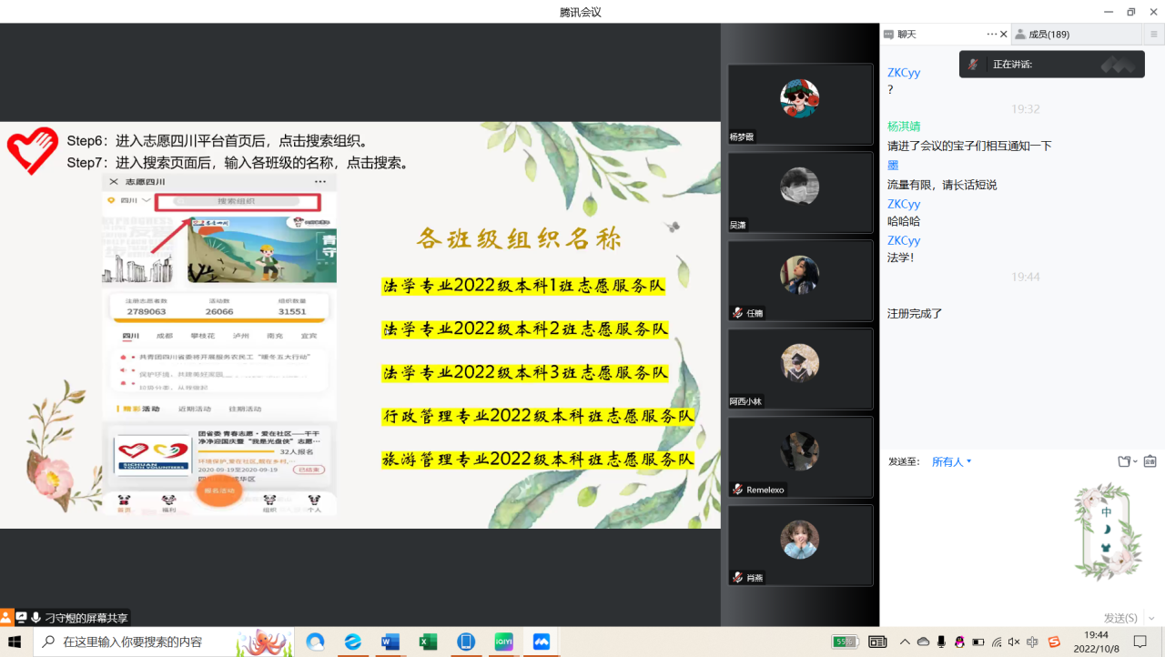 为进一步弘扬奉献、友爱、互助、进步的志愿精神,增强老员工思想道德素质,10月8日晚,伟德国际bevictor1946于线上召开2022届新生志愿者见面大会,伟德国际bevictor1946分团委员工书记柳慕杨、伟德国际bevictor1946志愿服务站站长李小玲、志愿服务站干部以及2022级全体新生参加本次大会,此次大会由伟德国际bevictor1946志愿服务站副站长刁守煜主持。