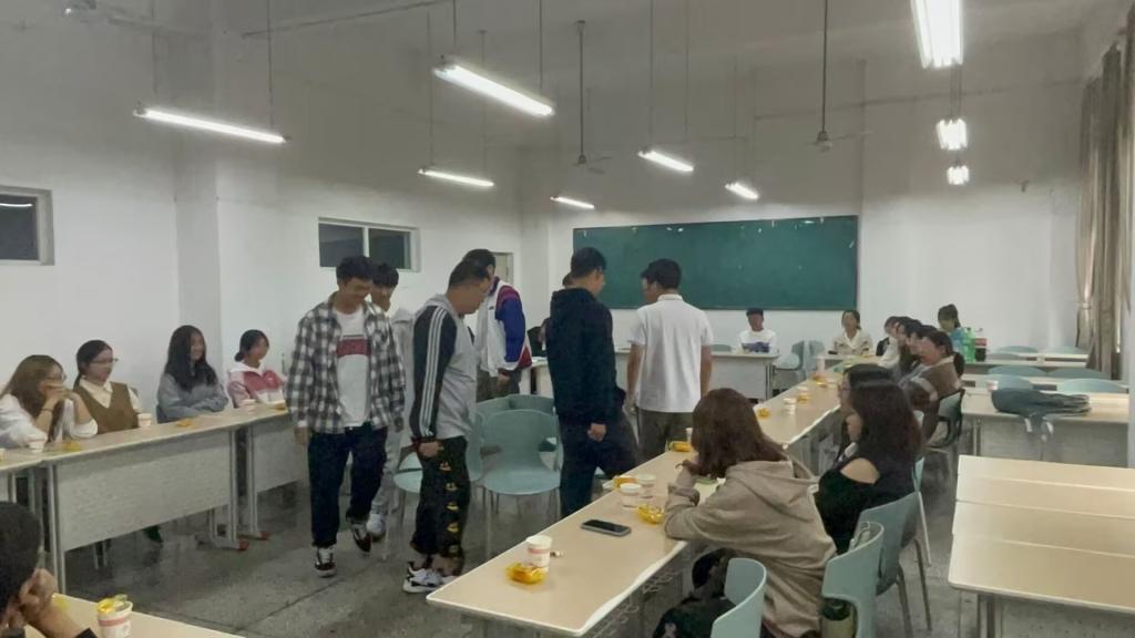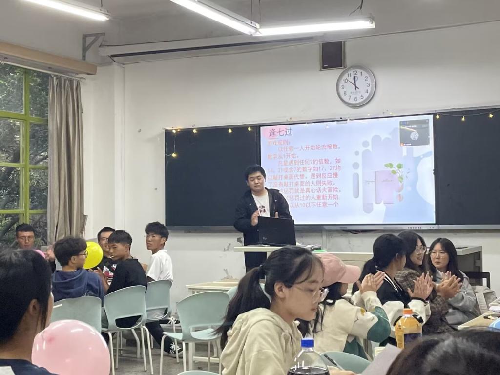 活动伊始,各班主持人介绍全部流程:自我介绍——娱乐环节——学长寄语。第一个环节中,同学们依次上台进行自我介绍。家乡特色、个人喜好、性格特点,同学们略带羞涩地完成第一次自我介绍,在欢声笑语中相知相熟。紧接着,大会进入了娱乐阶段。各个班级通过表演节目,并在表演节目的过程中穿插游戏增强了轻松快乐的氛围。趣味小游戏《逢七过》极好地调动了在场同学的热情度和积极性。同学们就在愉悦的气氛中进行了各种游戏。会场始终欢声笑语不断,紧张又不失欢乐,很快就拉近了各个班级同学们之间的距离。娱乐环节结束后,学长学姐们通过自身的大学经历,向新同学们的讲述了老员工活的经验,并解答了同学们近期的疑问。活动最后,同学们利用相机记录新生刚入学的懵懂以及对未来美好生活的憧憬,为自己的老员工活留下美好的回忆。至此,本次破冰班会在同学们的欢声笑语中落下帷幕。
