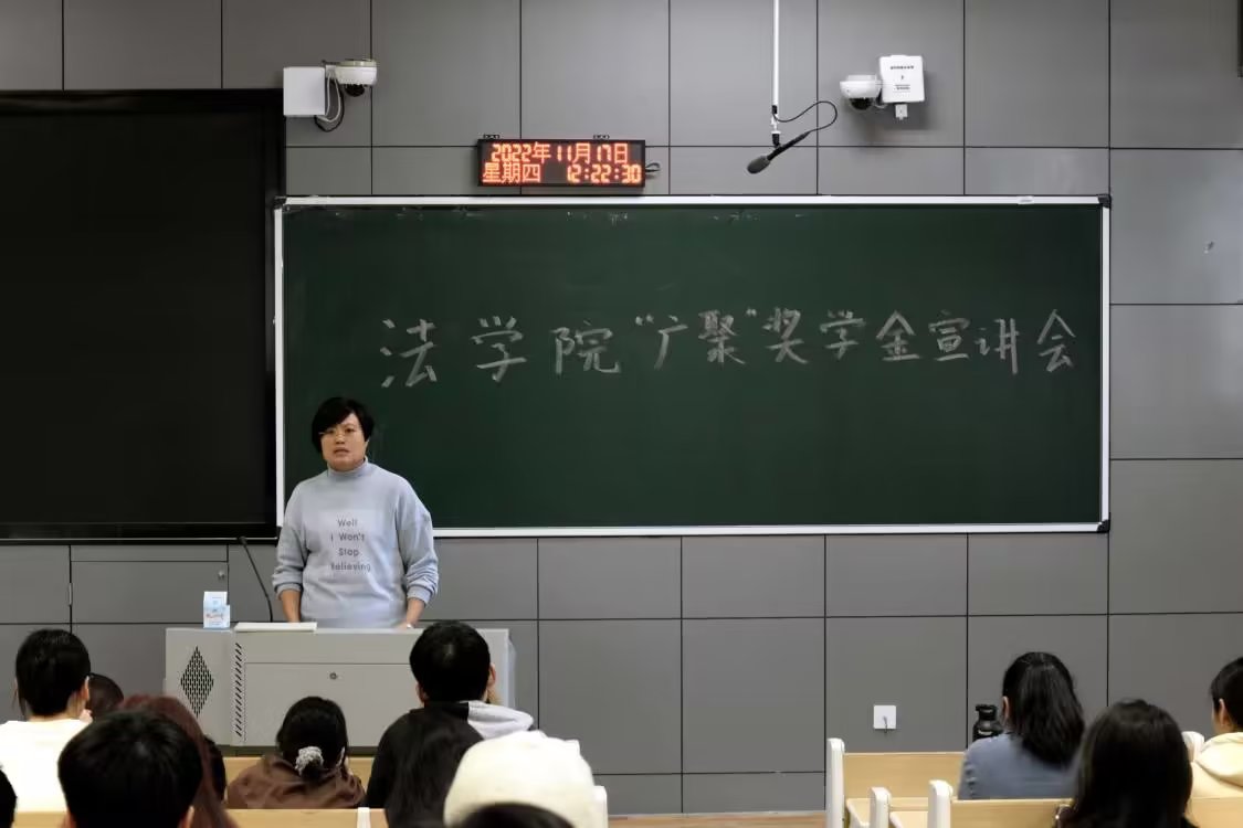 为激励同学们勤学奋进,营造良好学习氛围,使员工深入了解“广聚”奖学金具体内容,持续推进2022学年“广聚”奖学金评选工作。11月17日中午,伟德国际bevictor1946于一教1-1开展“广聚”奖学金宣讲会。此次宣讲会由法公司党总支副书记张琳主持,分团委书记兼员工科科长赵艳,2020级及2021级全体员工参加。