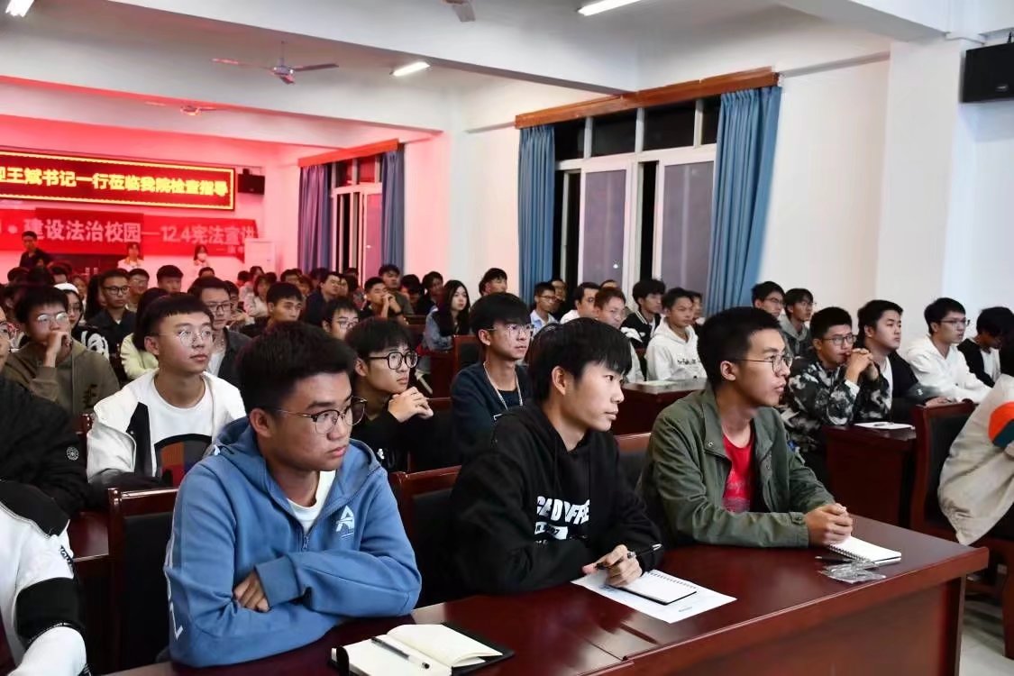 为弘扬宪法精神,加强校园法治教育,推动校园法治发展。公司开展为期一周的“弘扬宪法精神·建设法治校园——行宣法之旅·成自律之才 ”主题宣讲活动。12月2日晚,普法宣讲团于2-301教室开展第五天的宪法宣讲活动,宣讲团指导老师潘攀,宣讲团员工讲师以及智能制造学院部分师生参加。