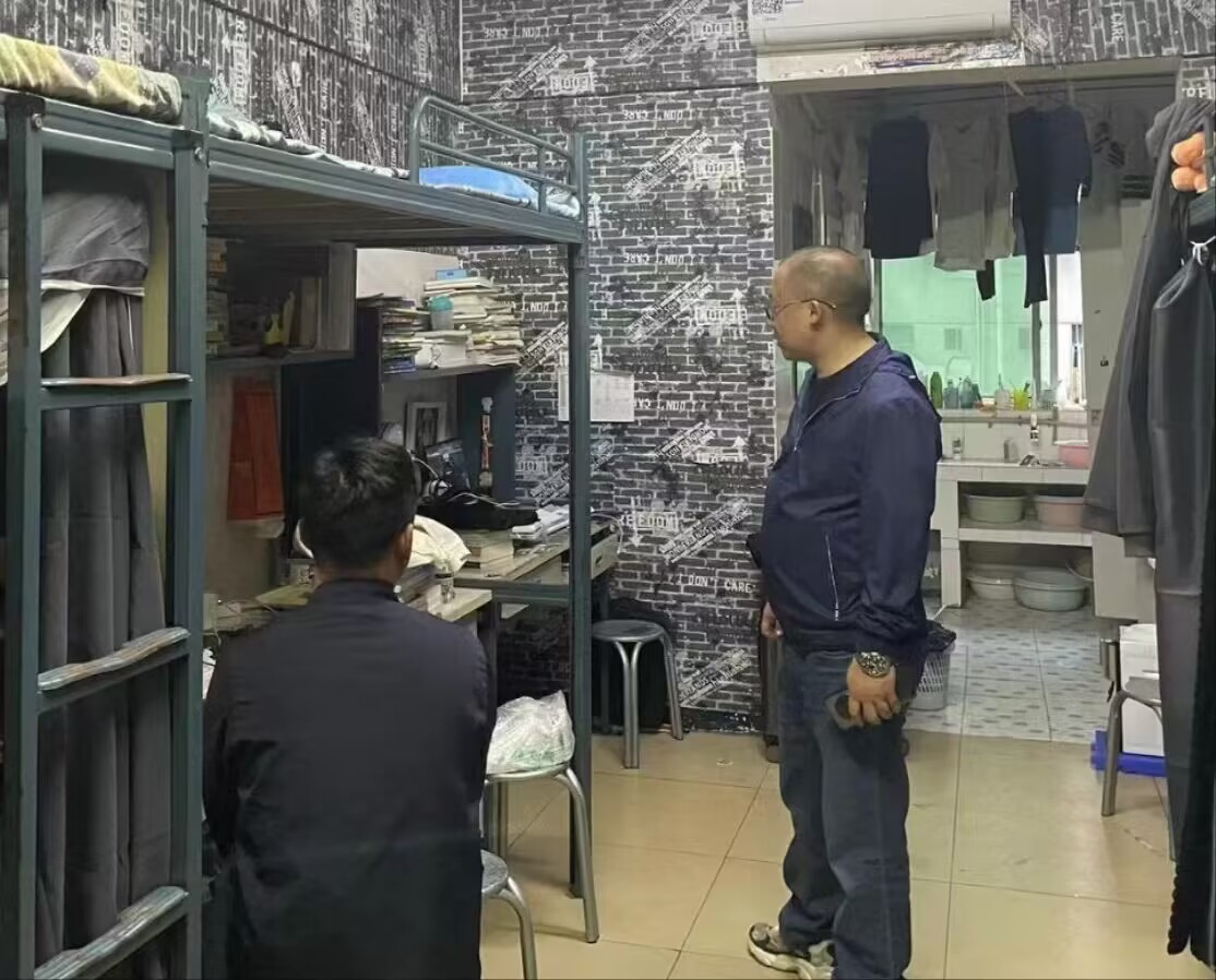 在检查过程中,张波重点检查了员工宿舍插线板线路是否损坏,叮嘱员工出门要关闭所有电器,并就使用电瓶车及其可能发生的的火灾隐患问题提出相关建议,他强调要时刻关注电瓶车运行状况,合理充电,避免暴晒。最后,张波对同学们的日常学习生活进行细致的慰问,提醒同学们要劳逸结合,关注身体健康与心理健康,多走出宿舍进行体育活动。