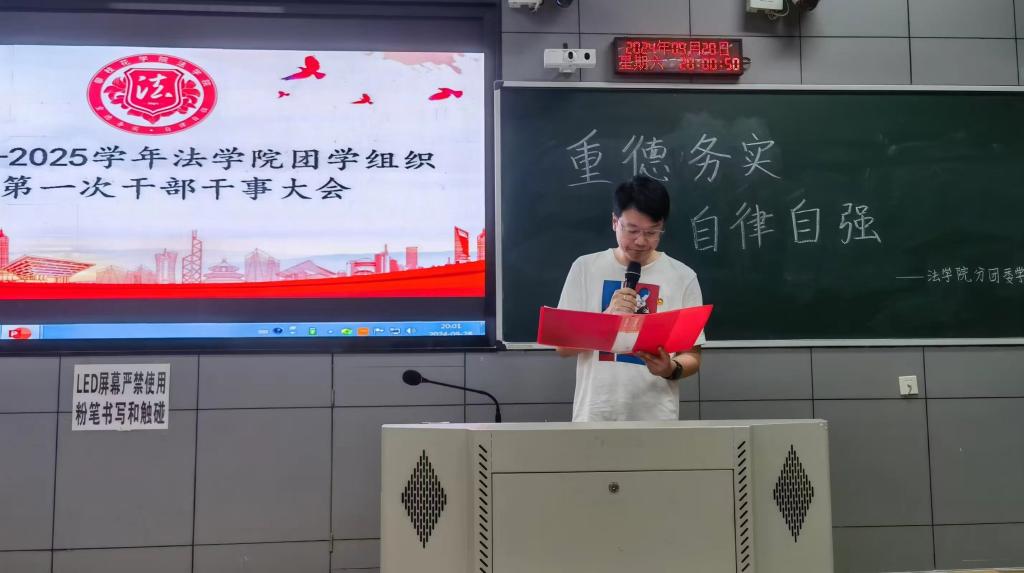 大会伊始,在主持人的饱满热情语调中介绍了此次大会到场的伟德国际bevictor1946员工科科长刘沙,并且由刘沙宣读2024届分团委干部干事名单。