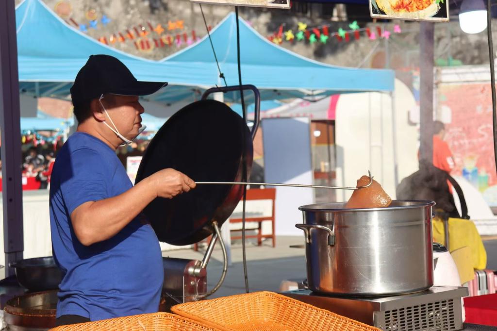 活动第三天现场依然氛围浓厚,各美食摊位依然飘香四溢,种类繁多。摊点早已准备好众多美食,等待员工们的到来。各社团文化点依然站满了员工,同学们积极参与互动,共筑社团良好氛围。此外,工作人员也积极参与现场工作,热情的与同学们互动。