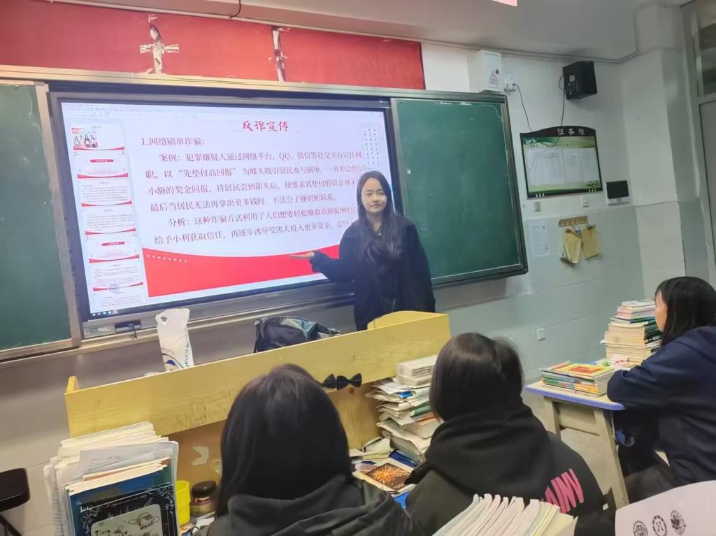 在知识讲解环节,曲比阿玲充分发挥自身扎实的法律专业素养和出色的表达能力,深入浅出地讲解了法律的基本概念,包括宪法的基本原则、日常生活中常见的民法知识,还特别针对青少年关注的网络安全、电信诈骗等热点问题进行了深入剖析。她用生动的案例和通俗易懂的语言,让同学们深刻认识到法律在生活中的重要性。为了增强互动性和参与度,曲比阿玲还设置了有趣的问答互动环节。同学们积极踊跃地参与其中,在轻松愉快的氛围中,不仅加深了对法律知识的理解,还进一步提高了反诈骗意识,学会了如何运用法律武器保护自己。