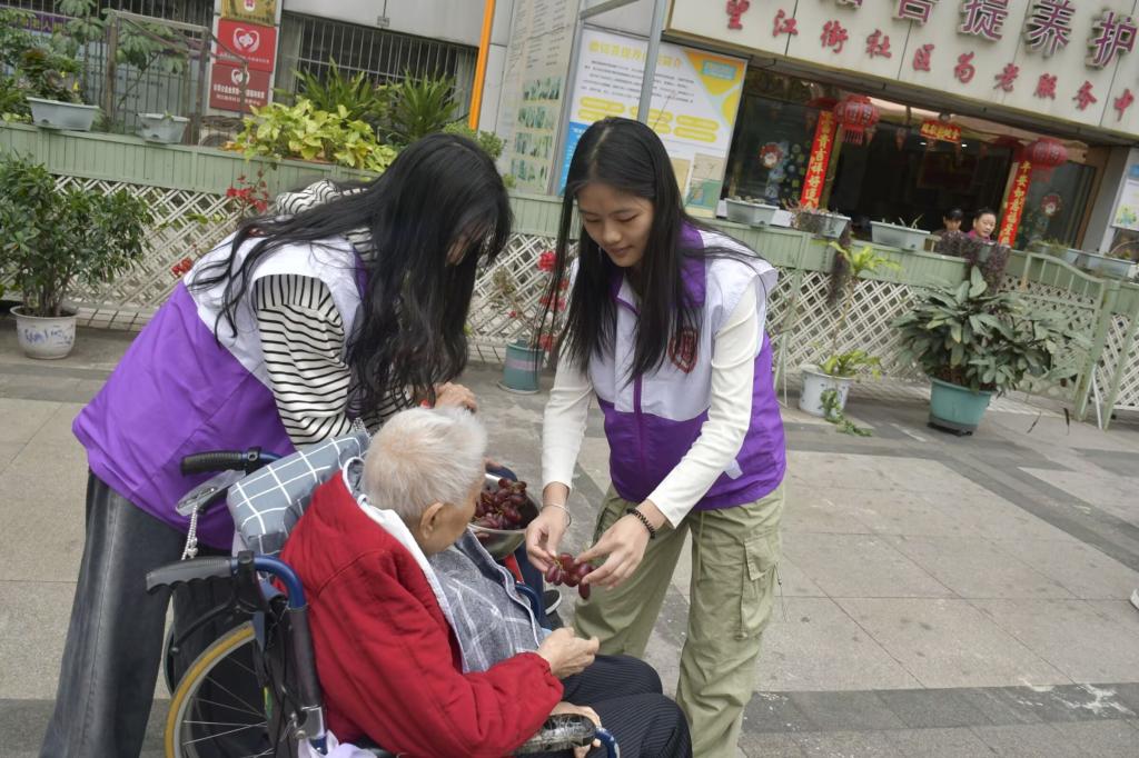 互动环节,同学们亲切地与老人交谈,通过轻松的提问和互动,让老人们感受到了来自社会的关爱。同时,同学们细心地分发零食,并协助进食,每一个细节都充满了尊重与爱意。