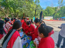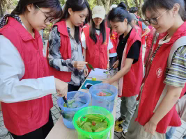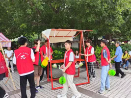 活动当日,同学们抵达社区活动现场后,即刻投身于筹备工作。场地布置阶段,大家各司其职,有人悬挂五彩斑斓的端午主题装饰,有人摆放俏皮可爱的六一元素饰品,有人认真清点活动所需的各类物资。经过共同努力,原本空旷的场地被精心布置得焕然一新,节日氛围扑面而来。活动开展期间,现场人流量不断增加,同学们分散至各个重要位置维护秩序。他们指引居民有序参与活动,细致解答各类问题,全力保障活动平稳、有序推进。在非遗体验环节,志愿者积极配合非遗传承人,组织居民特别是小朋友参与传统技艺体验,如生动展示的团扇绘制、植物印染等项目,让大家沉浸式感受非遗文化的独特魅力。