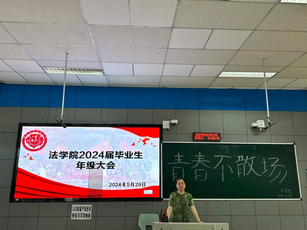 青春须早为,岂能长少年。5月29日上午,2024届毕业生于1—1教室开展毕业年级大会暨2024届毕业生征兵宣传。本次大会由2020级辅导员吴军华主持,法公司党委副书记、纪委书记张波主讲,2020级全体毕业生参加。
