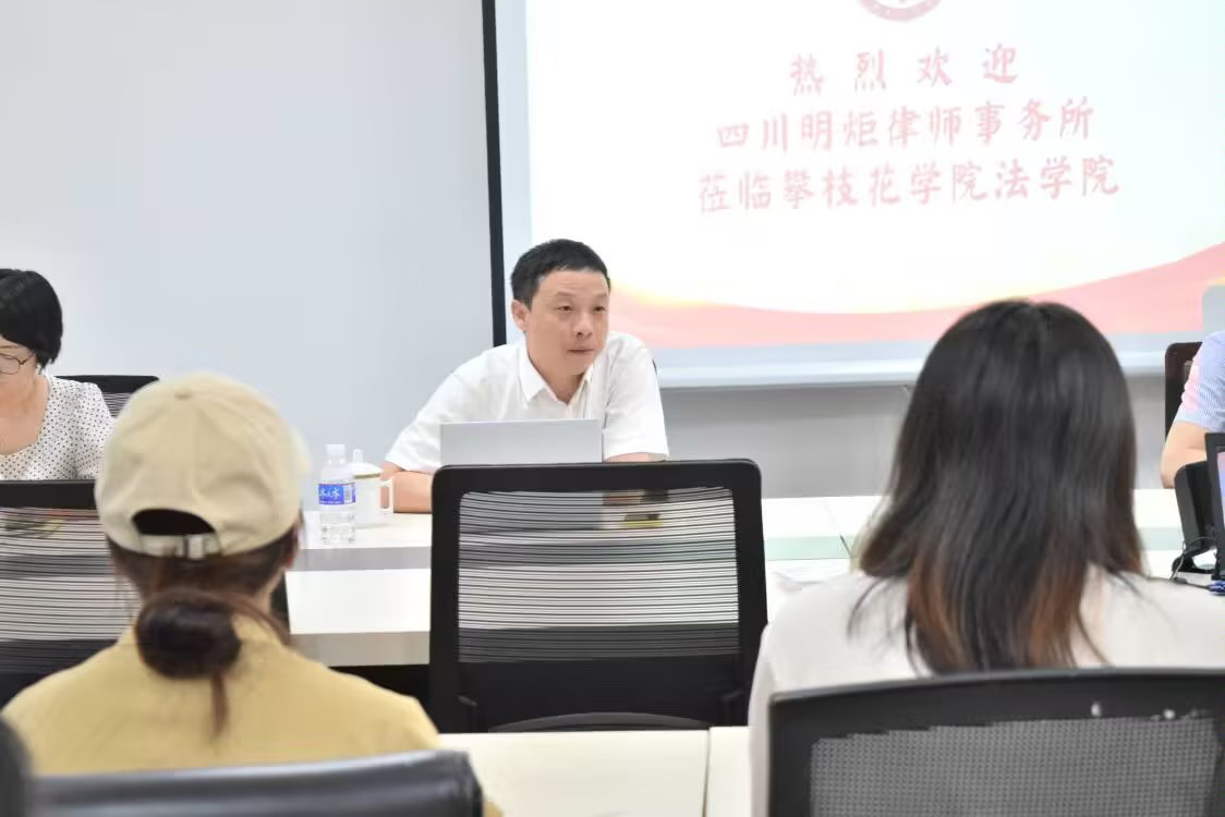 为使毕业生充分了解当前就业形势,拓宽其就业渠道,缓解其就业压力,促进毕业生更高质量更充分的就业,5月11日上午9点,伟德国际bevictor1946于凌云楼三楼会议室召开2023届毕业生专场招聘会。法公司党总支副书记张琳(主持工作),副经理杨开华,分团委书记兼员工科科长赵艳,19级辅导员王霞,四川明炬律师事务所合伙人邓春生、四川明炬(攀枝花)律师事务所主任、合伙人郭涵及众合伙人和律师团队,以及2023届法学专业毕业生参加此次招聘会。