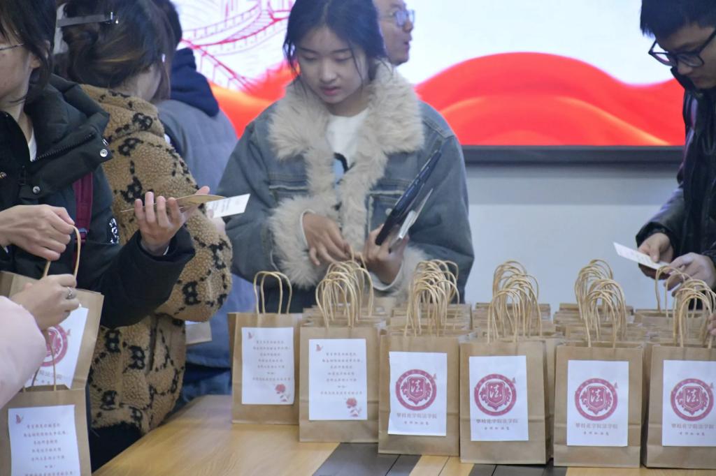 “祝福包”包含寓意“平安顺利”的苹果、寓意“马到成功”的橙子、考试用具和2025届专属祝福明信片。满载学院师生真挚心意的“祝福包”送至同学们的手中的同时,也为同学们送上了暖心的祝福。
