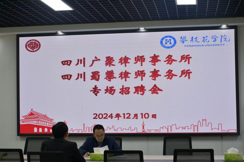 12 月 10 日下午 3 点,广聚律师事务所与蜀攀律师事务所携手走进伟德国际bevictor1946,于凌云楼三楼会议室举办专场招聘会,旨在为法学毕业生拓宽就业渠道、搭建律所与员工的沟通桥梁。四川广聚律师事务所主任车龙、四川蜀攀律师事务所主任蒲文峰亲临现场面试。