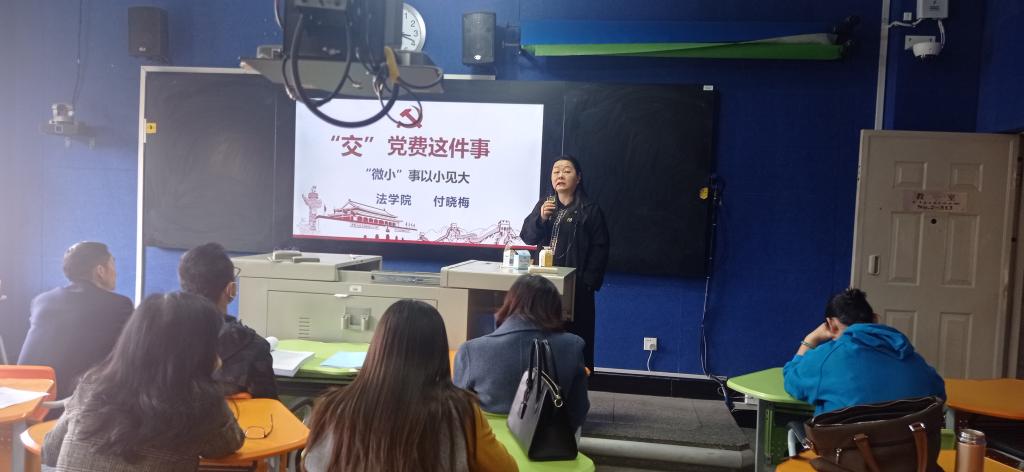 付晓梅以《交党费这件事》为题,从交党费是小事吗?交党费的要求和党费用途、交”党费不是“收”党费、做合格党员从交党费做起、新时期不忘初心五个方面进行讲述,使党员明白交党费的重要意义,做一名合格党员,不在于口号喊得多么响亮,而在于从按规矩交纳党费做起,时刻牢记党员身份,付诸实际行动。