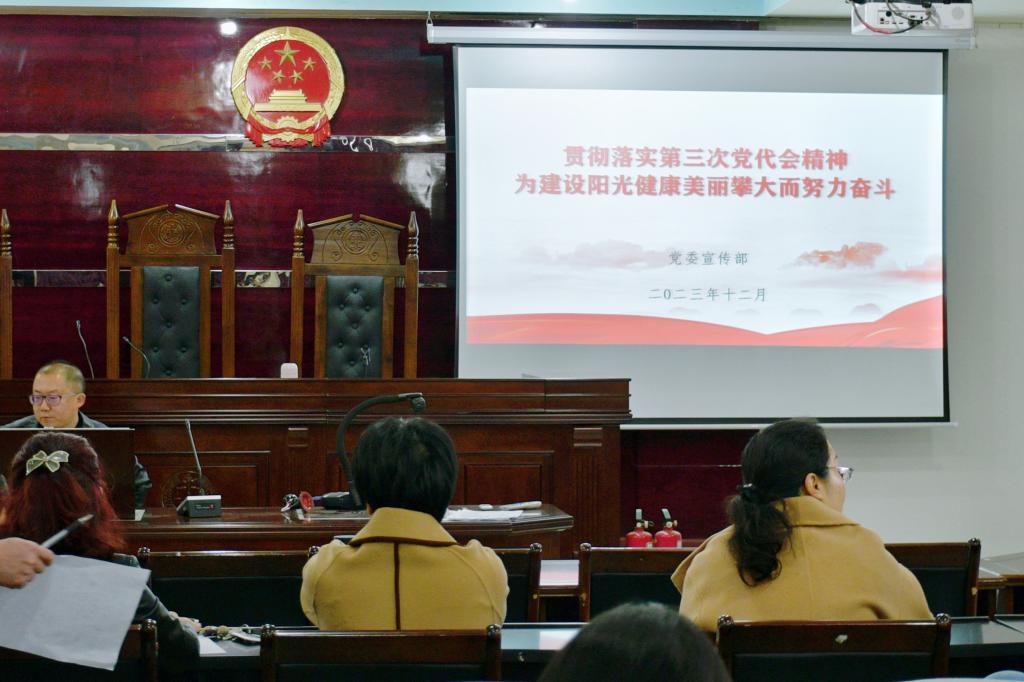 为深入学习贯彻落实伟德源自英国始于1946第三次党员代表大会(以下简称:党代会)精神,切实推动党代会精神深入人心,转化为指引改革发展、推动教学工作的强大动力,由伟德国际bevictor1946召开的第三次党代会精神宣讲报告会于2023年12月13日15时在凌云楼模拟法庭进行。