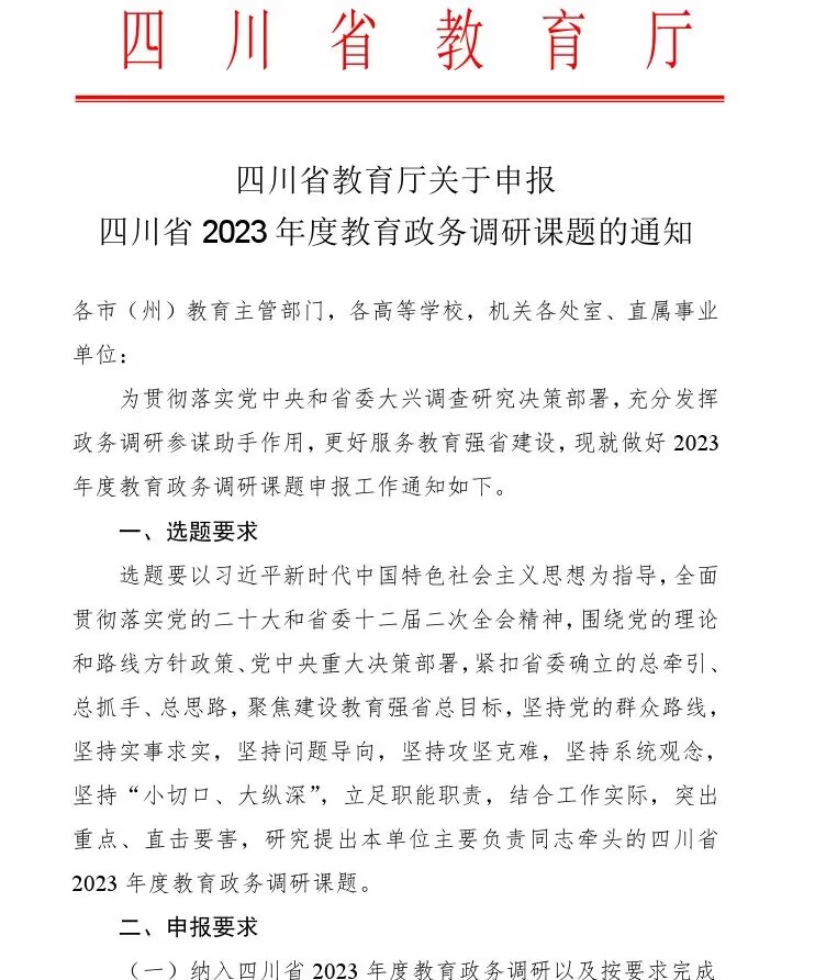 四川省关于申报四川省2023年度教育政务调研课题的通知