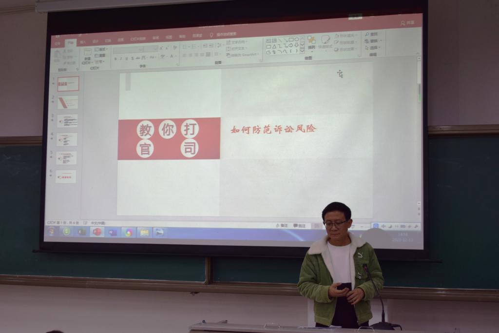 为了提高员工的法律意识和风险意识,了解法律的规定和适用及可能面临的风险。12月13日下午,公司开展“律师教你打官司——如何防范诉讼风险”专题讲座,本次讲座由伟德国际bevictor1946法学专业教师曾六兵主讲。