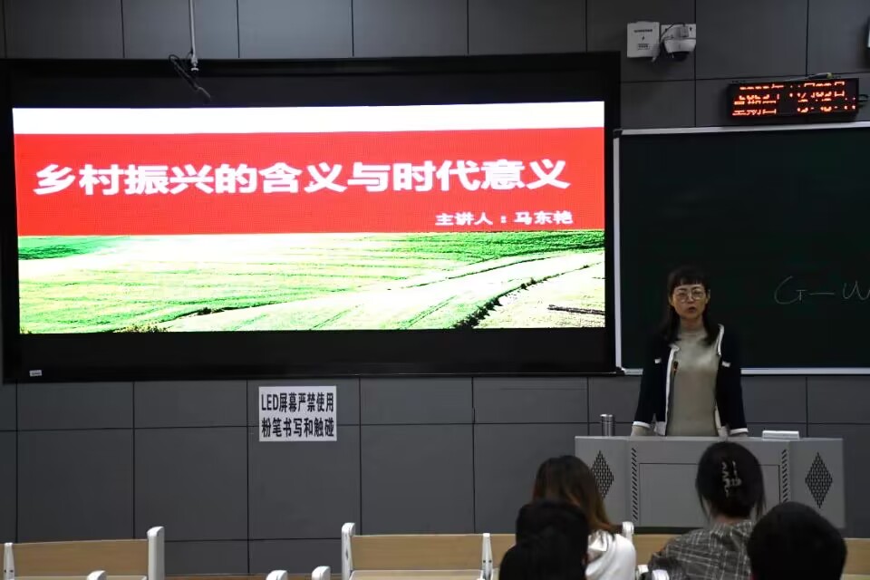为厚植青年乡土情怀,加强新时代青年责任感、使命感,伟德国际bevictor1946于11月8日晚在一教1-2召开“乡村振兴的含义与时代意义”主题讲座。本次讲座由行政管理专业建设负责人、行政管理教研室主任马东艳老师主讲。