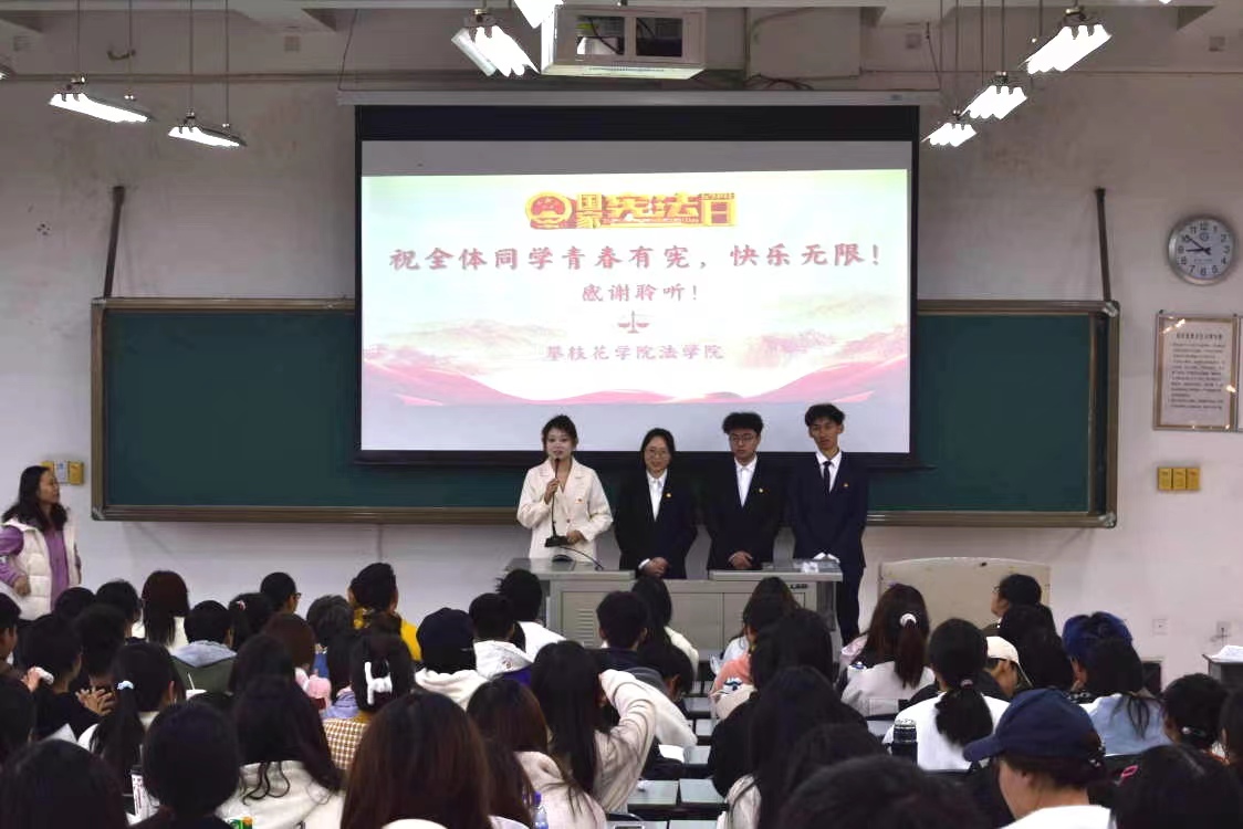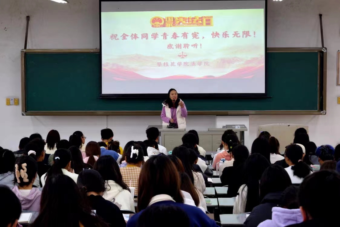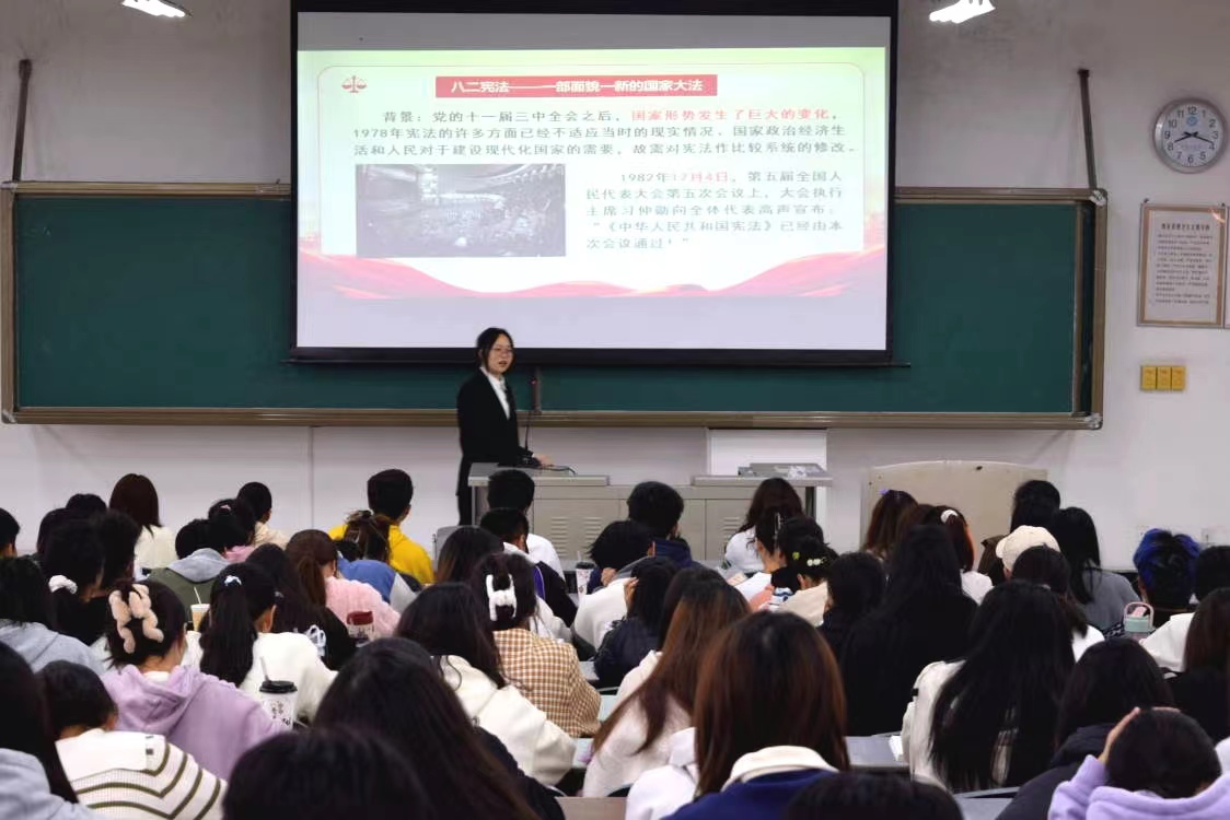 为了普及法律知识,弘扬宪法精神。公司开展为期一周的“弘扬宪法精神·建设法治校园——青春有宪,快乐无限 ”主题宣讲活动。11月28日上午,普法宣讲团于二教2-5教室面向伟德国际bevictor1946员工开展宪法宣讲活动,本次活动由宪法讲师团成员蔡淑君,张贵英,陈乐,李晓东主讲,伟德国际bevictor1946辅导员王霞做为本场宪法宣讲团指导老师出席本次活动。