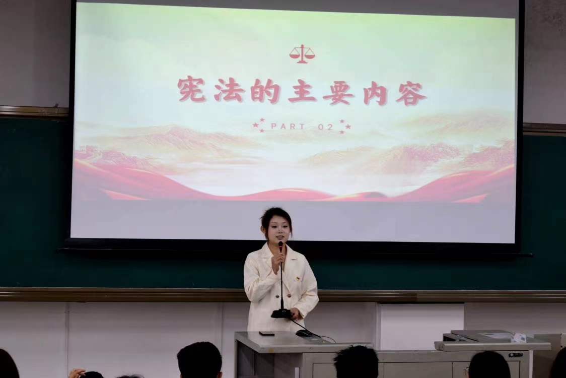 活动伊始,员工宣讲团通过放映视频,互动提问的形式,让在场同学们简单了解宪法,随后员工宣讲团讲述了我国宪法发展历程和主要内容,介绍了在不同年龄段宪法赋予公民的不同的权利和义务。以案教学,员工宣讲团通过经典案例为同学们讲解公民的基本权利以及如何进行维权,保障自己的合法权利。活动最后,王霞做为指导老师对员工讲师团的讲述进行了点评,对一些主要问题进行了更加深入的补充,整个活动中,同学们积极参与互动,活动现场氛围热烈浓厚。