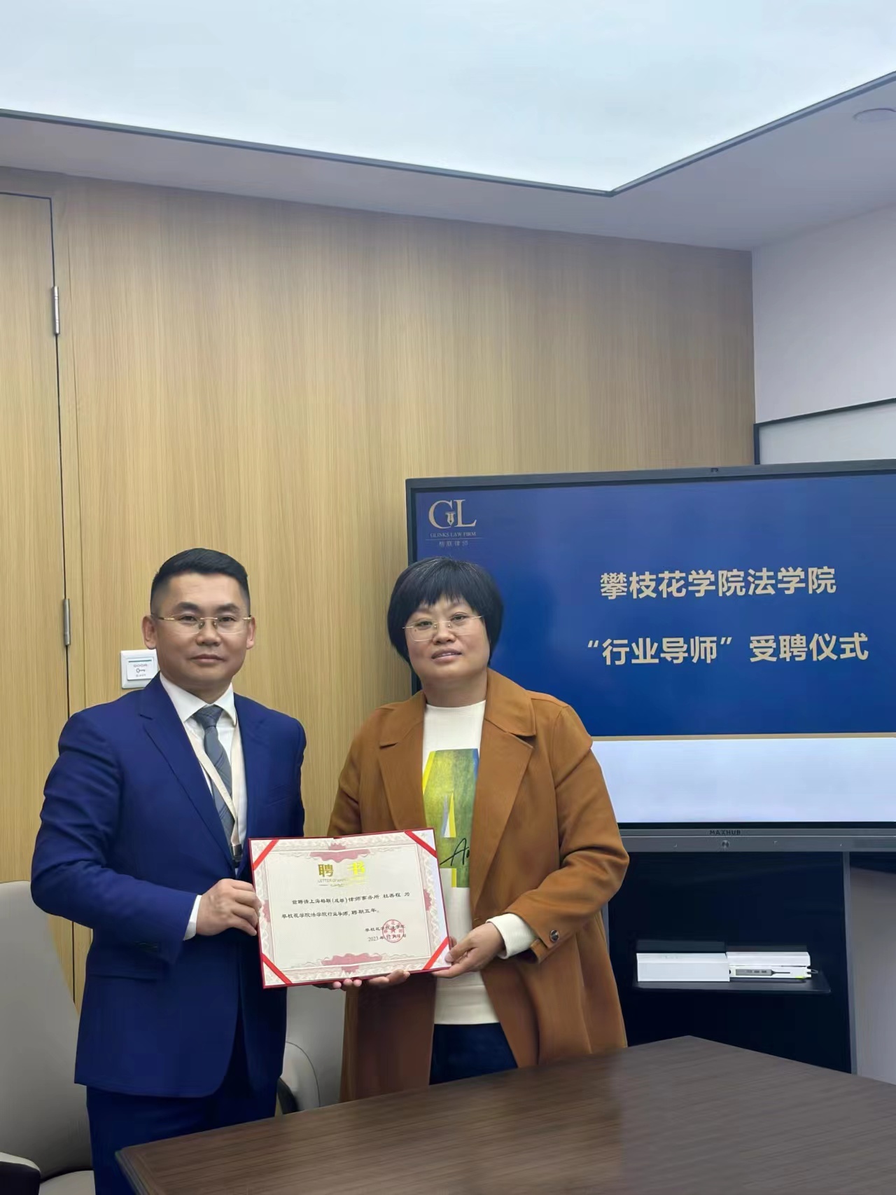 签约暨授牌仪式上,双方签约代表伟德源自英国始于1946法公司党总支副书记张琳、上海格联(成都)律师事务所主任杜善程在协议上郑重签字。经与上海格联(成都)律师事务所沟通协商,特聘请杜善程、张丹、冯堃、蒋劲宇、柏佳其、姚文军、舒利娟、冯叶、曾鹏、徐渤皓等10名律师为伟德国际bevictor1946法学本科专业行业导师,承担指导员工的法务实践、就业能力提升等工作。会上,张琳向格联律所转达了学校的真诚关心与问候, 她表示,学院目前正处于提升团队建设水平、冲刺法律硕士点建设工作的关键时期,学院将秉承“重德务实、自律自强”的办院理念,持续加强对高级应用型法学人才的培养,希望能够借此契机,进一步推进公司实习实训基地建设,提高实习质量和应用型人才培养质量。杜善程介绍了格联律所的发展情况,并表示加深院企交流,拓展合作空间将是企业发展的崭新机遇,十分愿意为学校的发展提供支持,为员工继续提供实习和就业的平台,共谋融合发展。