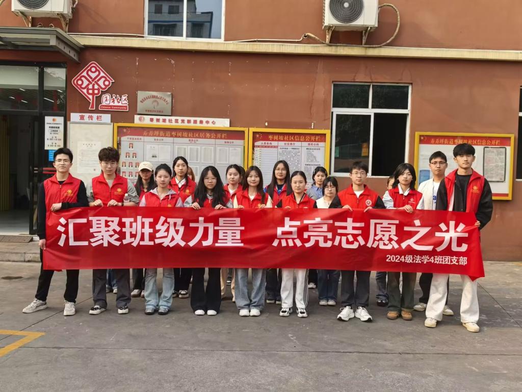 为积极响应环保号召,大力弘扬“雷锋精神”,3月8日,2024级法学本科4班团支部在枣树坡社区开展了首次“汇集班级力量,点亮志愿之光”系列班级志愿活动,班级内25名同学踊跃参与,以实际行动助力环保事业。