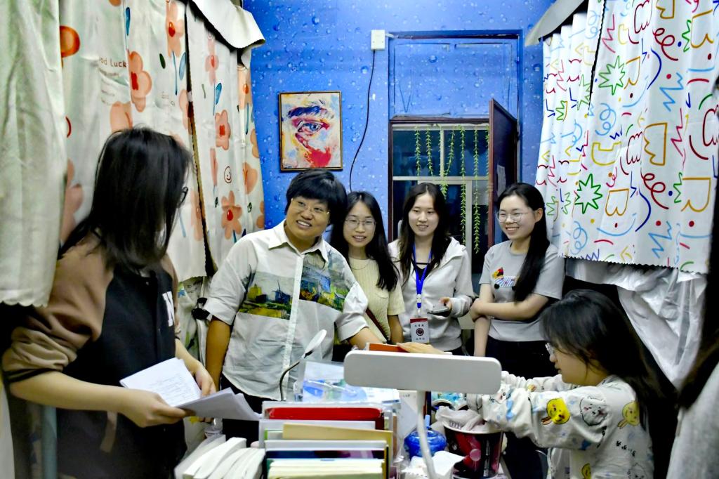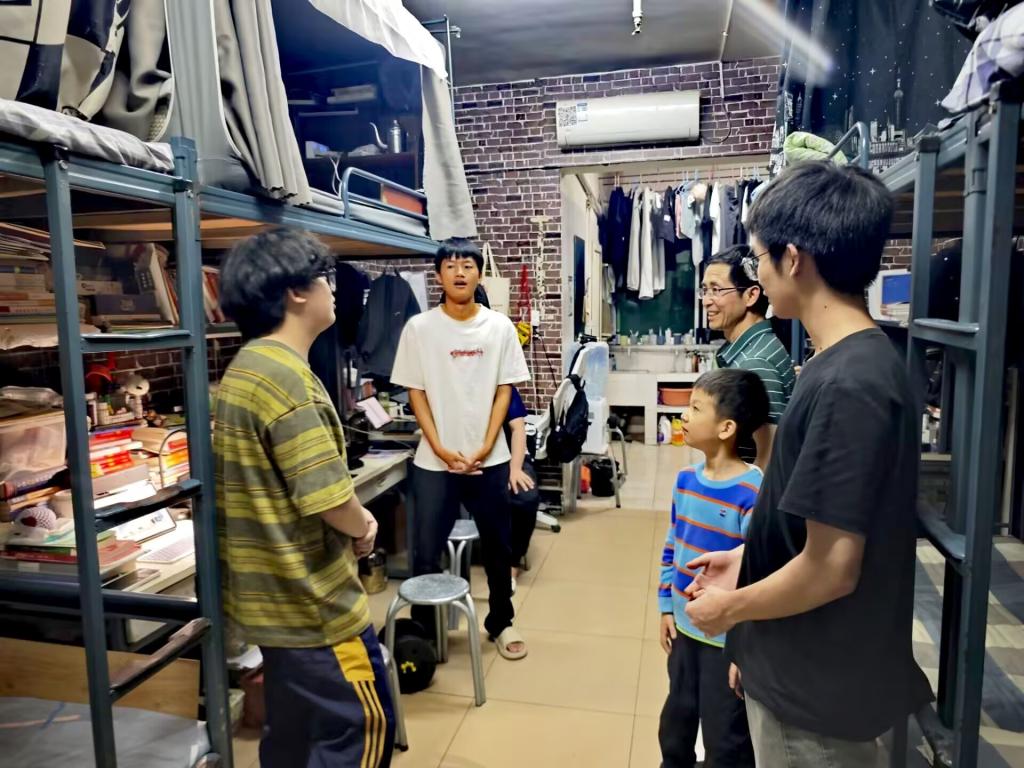 杨开华深入男生宿舍,与同学们展开面对面交流。他从日常生活、学习压力等方面入手,关心同学们的身心健康,分享了许多合理安排作息、调节情绪的方法,鼓励大家以积极乐观的态度迎接学习与生活的挑战。