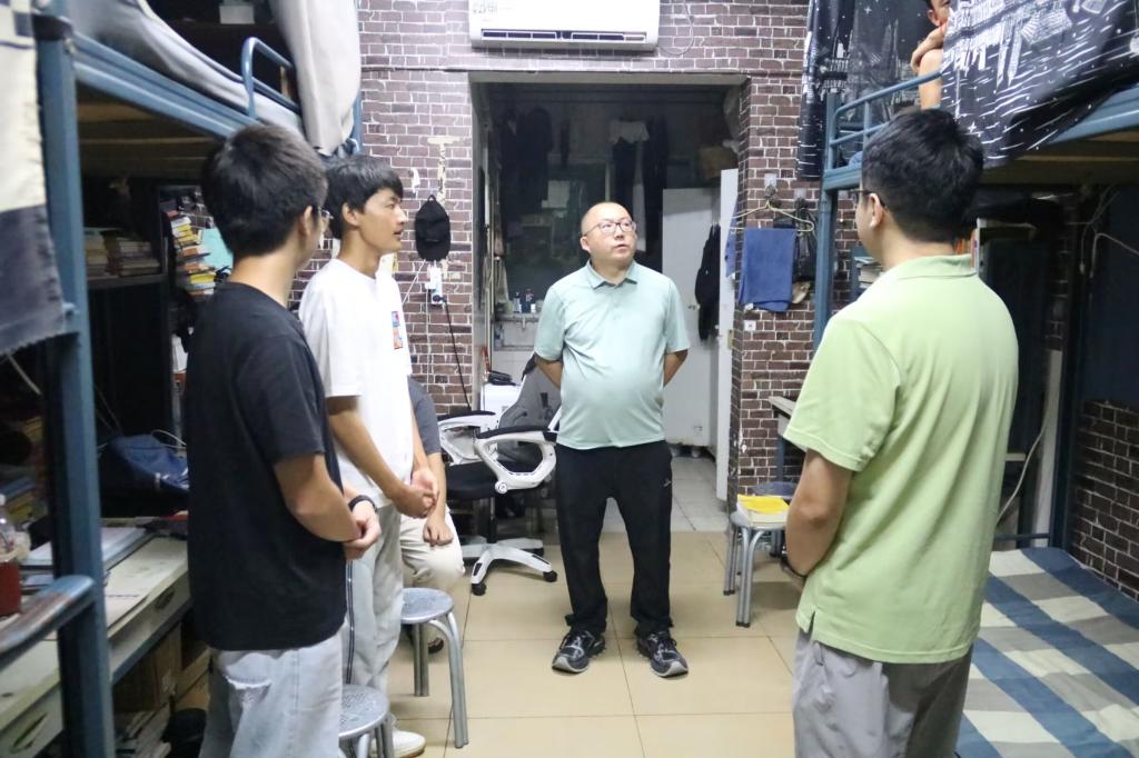交流中,张琳书记关心员工的学习和生活情况,叮嘱大家增强安全防范意识,注意人身与财产安全,鼓励同学们团结互助,共筑和谐寝室氛围。22级辅导员吴军华、23级辅导员王霞、24级辅导员周敏则结合各年级特点,围绕学业规划、宿舍人际关系、大学适应等问题与同学们深入交流,积极解答员工关切,提供切实指导。